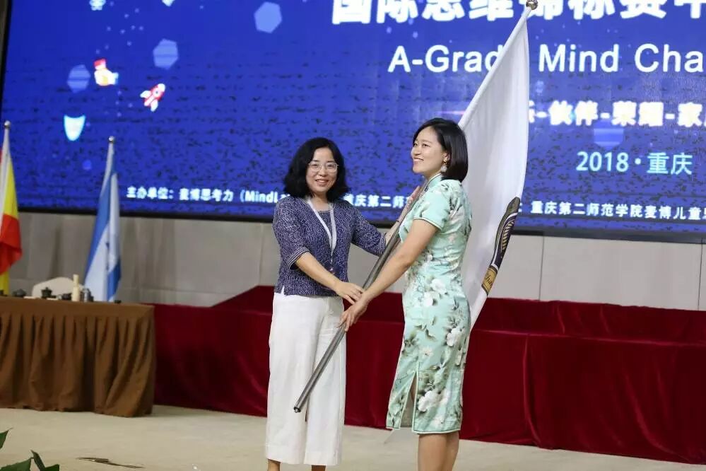 重庆组委会主席授旗给下一届举办城的主席。授旗仪式后,杭州以独特的方式展示了杭州的文化、美景、美食,期待着明年杭州有出色的表现。